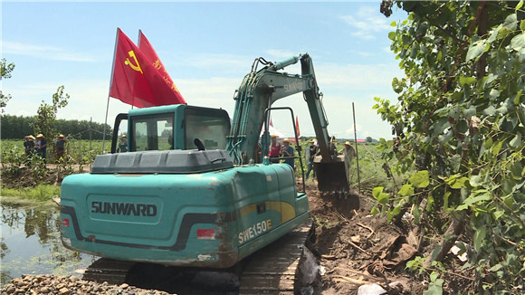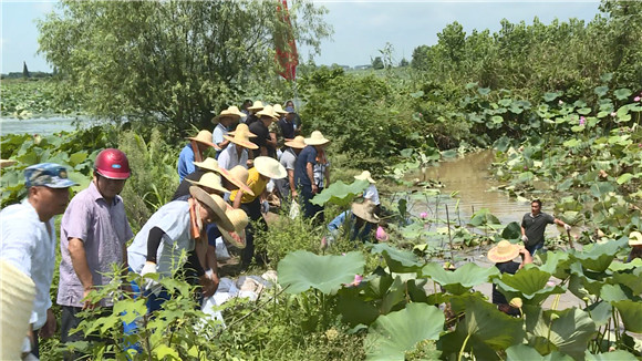 7月28日上午10点,位于沅江市茶盘洲镇幸福村黑湖脑村民在荷塘内发现一处管涌险情,镇防指迅速调集抢险突击队100人赶往现场进行处置。