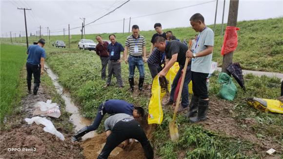 7月10日下午三点,四大队巡查发现三处沙眼,上报镇防指后,杨梦辉带技术人员现场指导,采取砂石定型导滤的方案,历时3个多小时,泥巴裹满双腿,汗水湿透衣背,成功阻止危险发生。