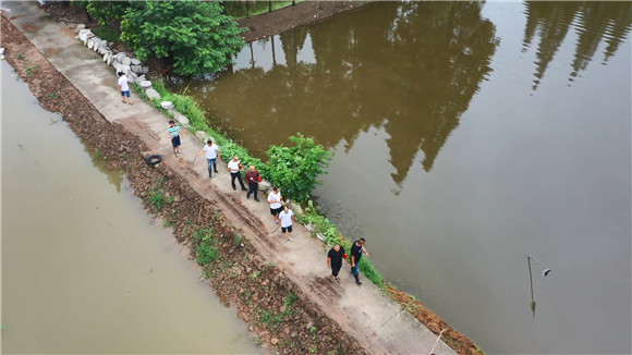 现在,渔业中队的防汛队员每天都会按时到岗,早晚都会组织巡逻队员对垸内鱼塘、压把井进行重点排查。坚守大堤,水不退,人不退就是他们现在唯一的信念。吴佳说:“下段工作,由于汛情时间延长,我们要求我们蹲点干部都要坚持岗位,加大排查力度,及时上报情况,每天汇总情况。”