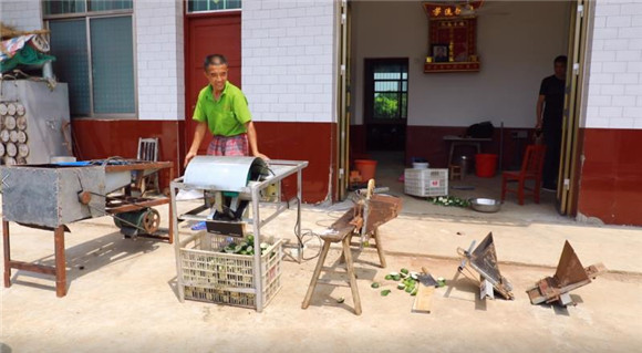 新湾镇党委副书记臧勇说:“他不仅在生活上是一个自立自强的人,还是一个爱创造发明的人,他发明了枳壳加工的机器,通过卖给周边农户给自己提供了可观的收入,为其他贫困户树立了以智脱贫的好榜样。”