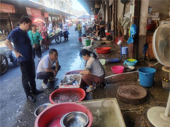 唐清云检查水产品摊位