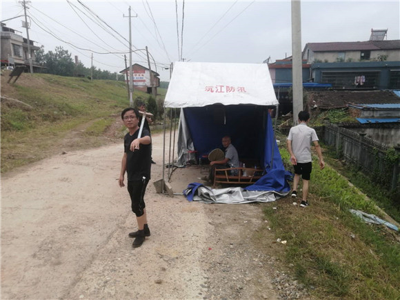 沅江市黄茅洲镇马粮山村是正在整顿当中的软弱涣散党组织村,进入防汛以后,为团结、协调、引导该村村民做好防汛工作,驻村工作组两名干部——第一书记任政带着队员宋新,虽然没有防汛任务,但仍然义无反顾地走上了一线大堤,成为了这场防汛战役中的两名志愿者。