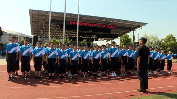 在琼湖初级中学操场上,烈日炎炎下今年入校的初一学生们正在认真地进行着入学军训,因为今天的特殊日子,教官训练的第一项变成了抗日故事分享,为学生们讲述平原游击队、飞虎队等先烈们的英雄事迹,学生们认真地听着,深受感动。而现场不少学生因为在暑假中看过电影《八佰》,主动请缨要向所有同学一同分享着观后感,励志要奋发图强,保家卫国。
