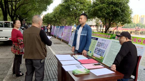在琼湖公园前坪,科协展板整齐地排列着,其余20个单位部门的展板及宣传台在琼湖路两侧自西向东延伸摆放。活动以科普咨询和发放宣传资料物品相结合的方式进行,现场发放了食品安全知识手册、土壤污染风险防控、农村安全饮水知识手册、农村病虫害防治条例等宣传手册2000余份。