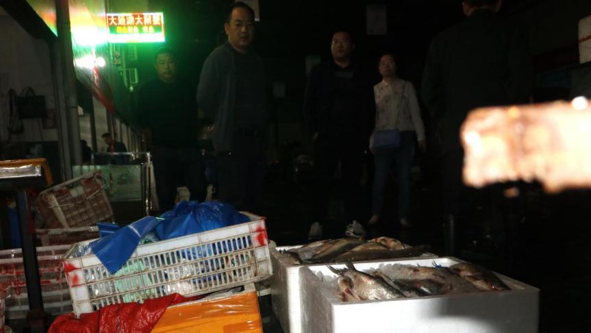 “这些鱼是从哪里进的货?请出示你们进货的索证索票、台账记录。”9月25日凌晨4:00,该局抽调20名执法人员,对湘北农贸市场水产经营户进行突击检查。执法人员现场仔细审核营业执照范围,询问水产品经营户的进货来源,认真核对索证索票,督促经营户不得经营非法捕捞的渔获物。
