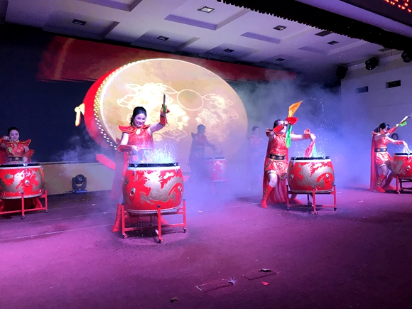 文艺晚会在市传统文化协会带来的水鼓舞《中国龙》中拉开帷幕,“水鼓舞”是苗族人民一种祭祀祖先,祈求风调雨顺与村寨平安的群众舞蹈。振奋人心的舞风和鼓韵,给观众目不暇接的视觉冲击和审美享受。