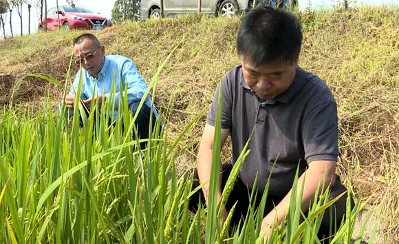 农技员李新文表示:今年的一季稻以及晚稻长势比较好,天帮忙人努力,今年的一类苗类基本达到90%,刚才看的这块就发现有极少数的植株被重新搞坏了一点,极大多数还是算比较正常的,长势比较好。