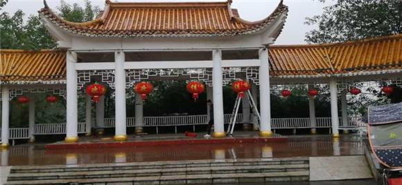 9月28日至29日,工作人员按照计划对龙柱广场和渔翁广场进行装点。在龙柱广场前沿两侧6根庄严的龙图腾柱上悬挂着象征吉祥的大红灯笼,四周的绿带内有序地扦插着红黄蓝绿四种颜色小旗,迎风飘扬迎接着来往游客。往里走,组合步道一排排的红灯笼将展现在您面前,欢迎您的到来。