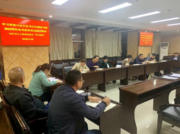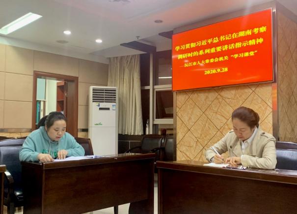 9月28日晚,沅江市人大常委会机关“学习课堂”如期举行。“学习课堂”上,传达学习了习近平总书记在湖南考察调研时的系列重要讲话指示精神、省委常委会扩大会议、全省领导干部会议、益阳市委常委会第27次(扩大)会议及沅江市委“学习课堂”第20次集中(扩大)学习精神。机关全体工作人员参加学习并交流学习心得。
