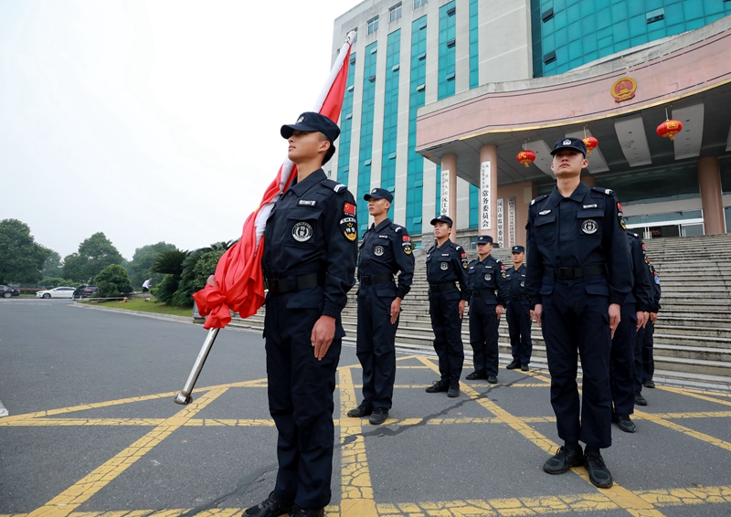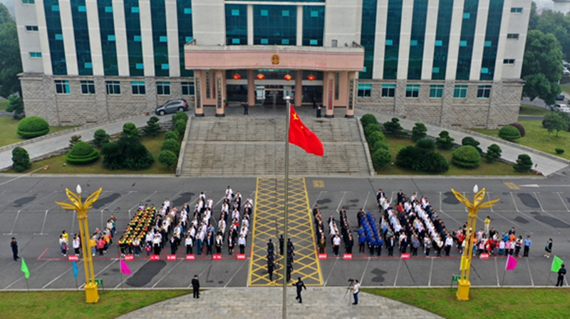 节日的市治大院,花团锦簇,彩旗飘扬。上午8点,升国旗仪式正式开始。由特警组成的国旗护卫队昂首挺胸,迈着整齐有力的步伐,护卫着国旗走向升旗台。随着现场指挥员“升国旗、奏国歌”口令下达,3名升旗手笔直挺立,甩旗、升旗、敬礼,一气呵成,干净利落,鲜艳的五星红旗迎着朝阳冉冉升起。