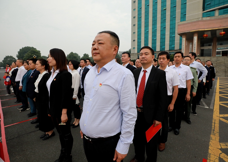 喜迎“国庆”“中秋”双节,沅江市全体在家市级领导,离退休老干部及职工群众代表聚集在市治大院楼前,升国旗、迎国庆,共同庆祝祖国母亲生日。市委书记黄育文及李向前、刘武、彭达明、李益、高应良等市领导出席升旗仪式。