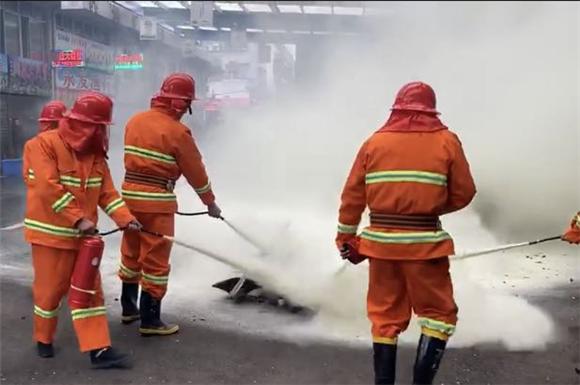 正值“双节”假期,湘北市场车辆如梭、人潮涌动、热闹非凡。笔者看到,湘北市场内正在进行消防演练,模拟市场内发生火灾,进行灭火施救,现场几位全副武装的消防员手拿灭火器正在列队,随着负责人一声令下,消防队员们立即跑步奔赴演练地点,到达模拟地点后,按照既定演练计划,各自分工模拟警戒、引导疏散逃生、用灭火器对火苗进行及时扑灭。与此同时,湘北办工作人员对市场内业主们逐一认真讲解消防知识和消防器材使用说明,并结合一些典型的火灾事故案例,深入浅出地从火灾预防、火灾扑救和器材操作进行讲解,现场对灭火器、消防栓等消防器材装备的使用进行实地培训。 整个演练过程规范有序且贴近实战,效果明显。