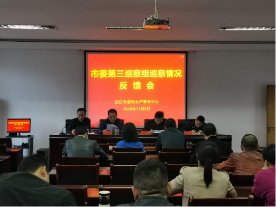 根据市委巡察工作领导小组的部署,2020年11月5日,十二届市委第十轮巡察第三巡察组向市畜牧水产事务中心反馈巡察情况。市委巡察工作领导小组成员、市委组织部副部长李献宇,市委第三巡察组组长罗朝阳,副组长肖治宇向市畜牧水产事务中心党组书记易新年反馈了巡察情况。之后,罗朝阳代表市委巡察组向畜牧水产事务中心党组领导班子进行了反馈,李献宇传达了市委书记黄育文同志关于巡察工作的讲话精神,对巡察整改工作提出要求。畜牧水产事务中心党组书记易新年主持会议并作表态发言。