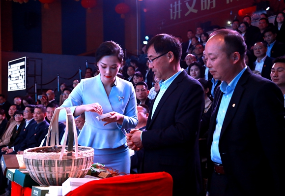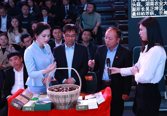 主持人现场品尝芦笋芦菇产品