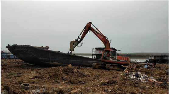 11月6日,市交通运输综合行政执法大队将4艘“三无”船舶从黄茅洲水上检查站押送至沅江市石矶湖集中拆解点进行集中拆解。