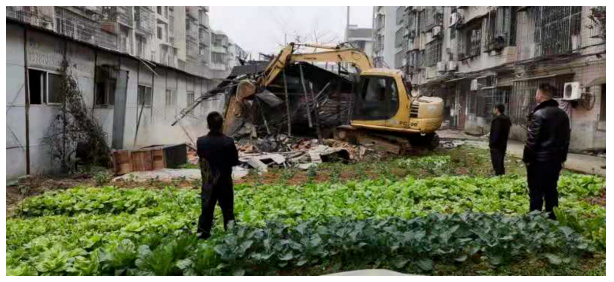 沅江市教育小区,位于市区光明路与金橙路交汇处,建成已有15年,小区内有几处违章建筑,不仅占用公用面积,而且影响居民生活和出行。
