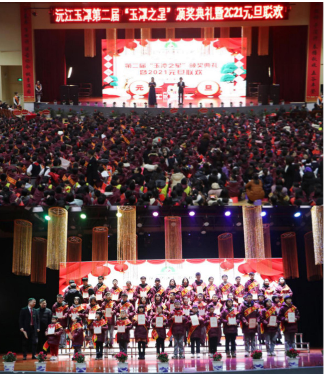 12月29日,沅江市玉潭学校第二届“玉潭之星”颁奖典礼暨庆元旦文艺联欢活动隆重举行。全校师生及部分家长代表4000余人齐聚一堂,共享庆典。