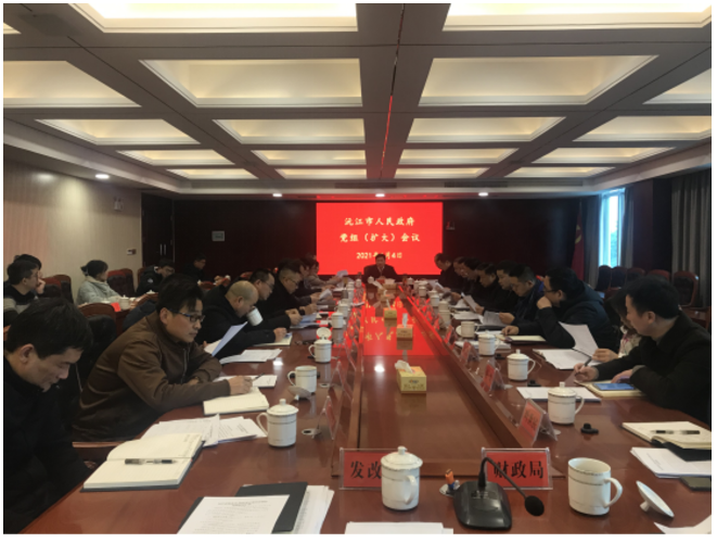 1月4日下午,沅江市政府党组书记、市长杨智勇主持召开党组(扩大)会暨市政府党组理论学习中心组学习会。市政府党组副书记丁晓明,市政府党组成员王倜夫、邹军、代虹宇、周辉、夏鑫、谢贵出席会议。副市长钟清华、高新区管委会主任吴限忠及财政局、发改局主要负责人、市政府办班子成员列席会议。