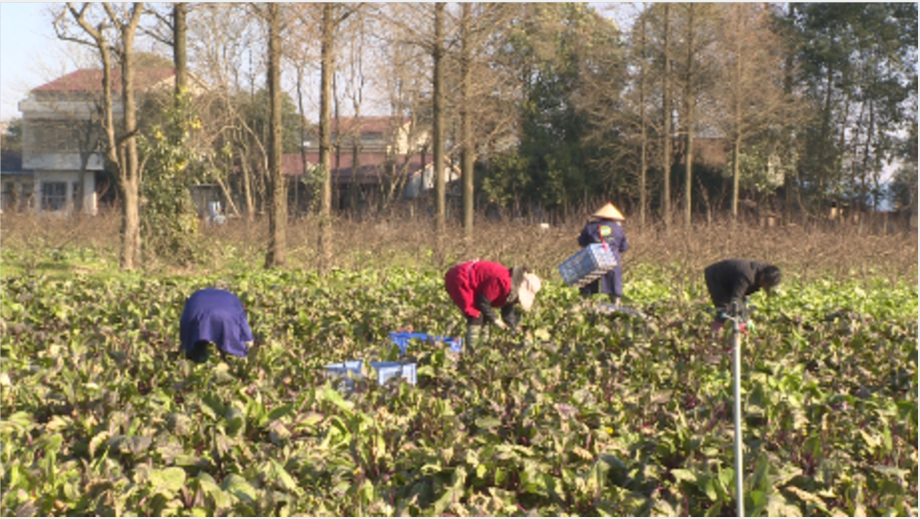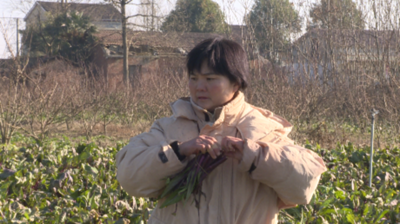 在草尾镇胜天村的娘子军无公害蔬菜种植专业合作社里,蒋罗清正在和员工们采摘红菜苔。一大片长势喜人的红菜苔让蒋罗清的脸上露出了笑脸,她麻利的忙着手里的活,把一把又一把的红菜苔装入菜筐中。
