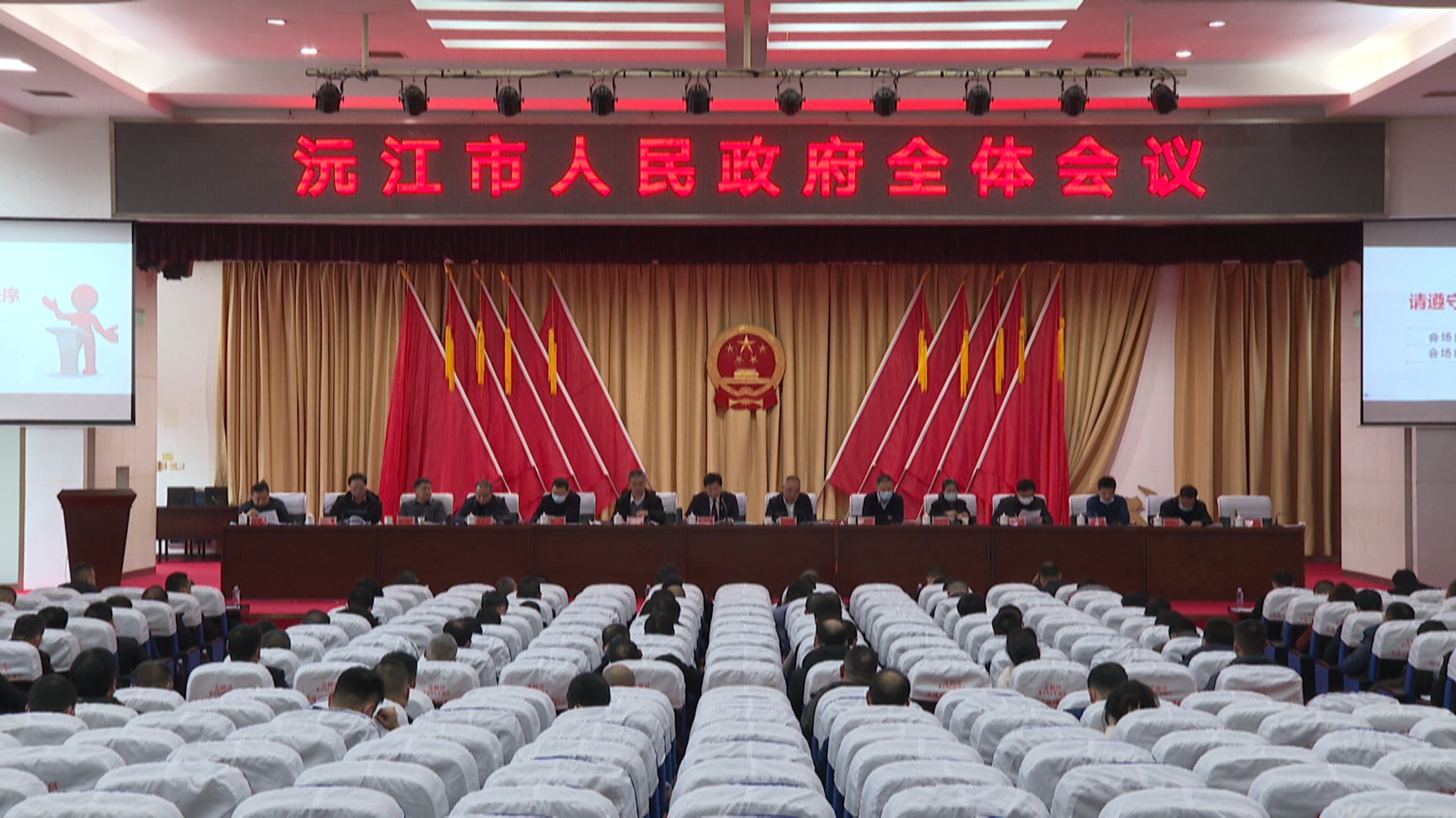 1月22日,沅江市人民政府全体会议在市治大院二会议厅召开。市委副书记、市长杨智勇出席会议并作讲话。市领导丁晓明、谭洪祥、王倜夫、邹军、钟清华、代虹宇、周辉、夏鑫、吴限忠等出席会议。