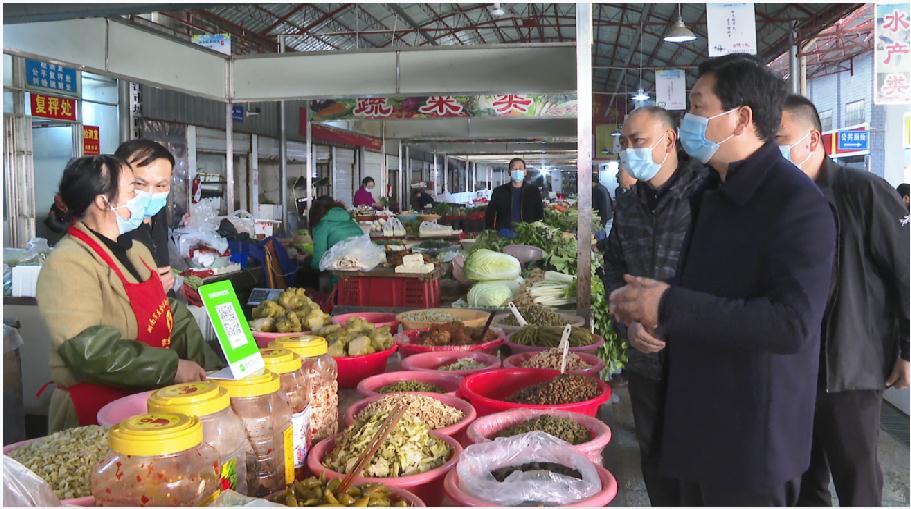 在西区农贸市场门口的疫情防控体温检测点,工作人员正有序对进出市场的市民进行体温测量、劝导过往群众带好口罩;农贸市场内干净整洁,经营有序。杨智勇边走边看边了解市场卫生、疫情防控工作开展情况,并与商铺老板亲切交流,询问其经营情况,了解市场整体保供情况。通过实地查看与走访交流,杨智勇肯定了我市春节期间疫情防控工作所取得的成绩,要求全市上下要坚决贯彻中央和省市各项决策部署,进一步提高思想认识,压实工作责任,强化防控措施,毫不放松抓紧抓实抓细疫情防控工作,确保人民群众生命安全和身体健康。