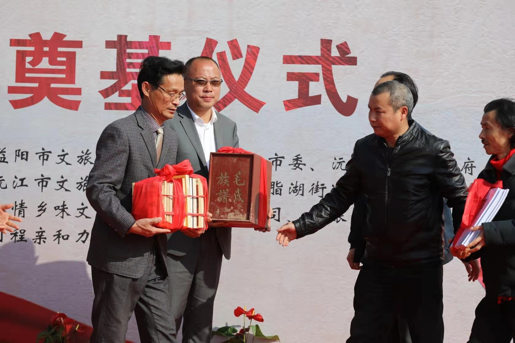 奠基仪式上,湘情乡味文化旅游开发有限公司授予“沅江市红色旅游基地”铭牌。