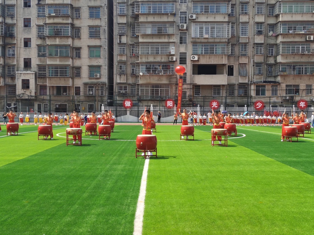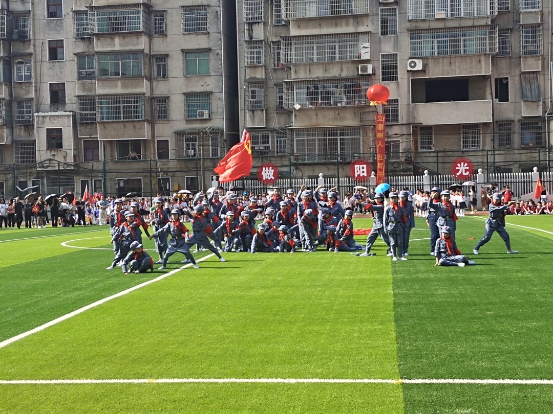 上午8点,艺术展演活动在凌云塔学校操场拉开帷幕。演出现场,孩子们身着喜庆服装,腰挎玲珑小鼓,手拿小鼓槌,跟随着欢快的节奏,尽情释放活力。接踵而来的《百年征程》《共产主义接班人》《红星闪闪》《永远跟党走》《红星向党》等15个节目,将红色元素与舞蹈、京剧、舞台剧、学校特色完美融合,充分展示了孩子们迎接新时代、讴歌新时代,阳光快乐、向善向上的精神风貌。