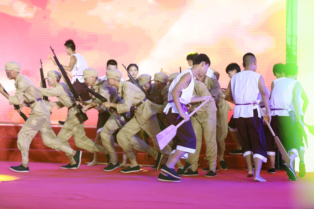 文艺演出分为序曲篇、上中下篇和结尾篇五个部分,以情景歌舞、音乐快板、花鼓戏、歌剧等方式,来表现百年来我们党团结带领中国人民接续奋斗,开辟伟大道路、建立伟大功业、铸就伟大精神的光辉历程,生动展现出党和人民事业发展的光明前景。