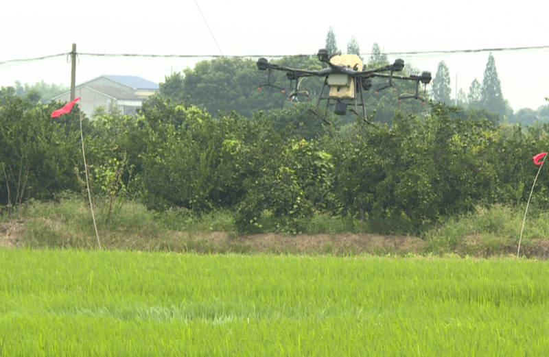 来到胭脂湖街道,农户正在忙着给稻田施肥。随着技术员的遥感无人机腾空而起,匀速向眼前的水稻田飞去。按照指令,无人机均匀地将高含量的阿维菌素、氯虫苯甲酰胺、茚虫威的混合溶液以雾化的形式喷洒在水稻叶面上。