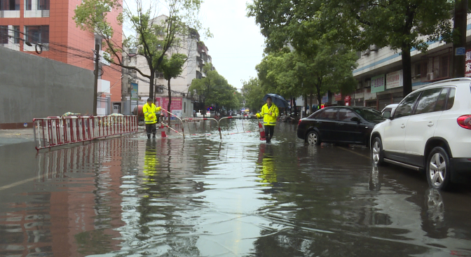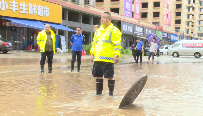 市政工程事务中心副主任罗智表示:“今天凌晨五点多钟,市政服务中心接到暴雨警报后,市政中心便出动了40余名干部职工在市区易涝点进行排查疏导,主要在凌云塔学校、金湖湾、洞庭宾馆、电力局金富城巷口进行现场疏导,对堵塞的污水口进行清理”。