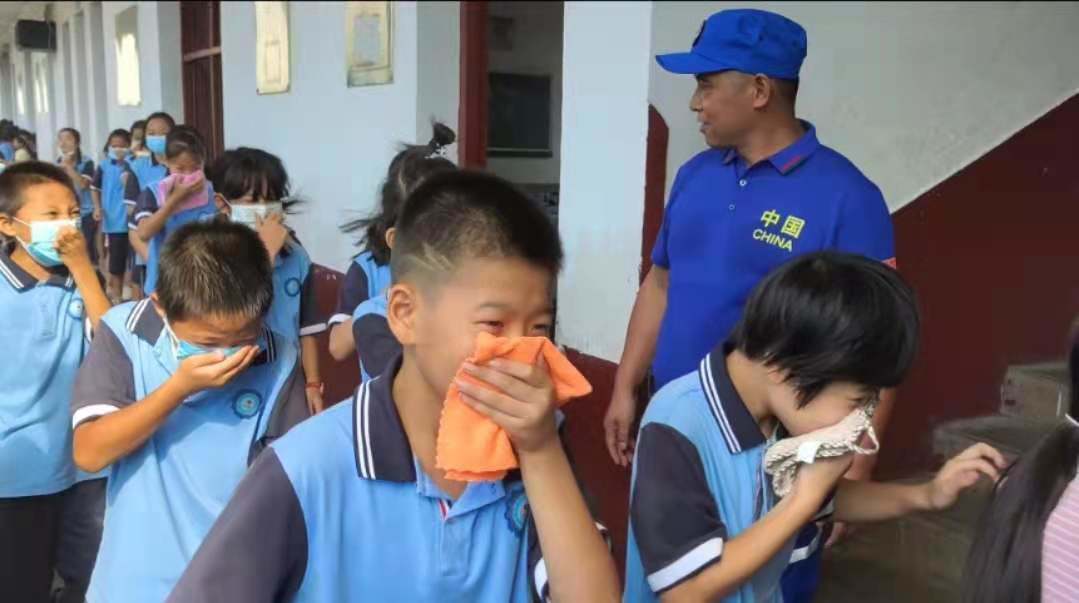 在模拟火灾现场,全校师生在救援队员的有序组织下,用湿毛巾捂住口鼻,低头躬身,迅速跑出教室到达安全地点集合,整个疏散过程秩序井然,疏散演练取得圆满成功。