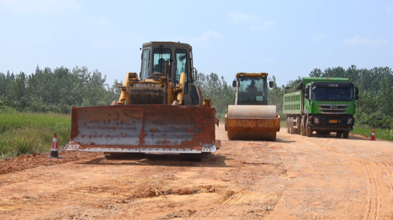 S507茶黄线建设项目B标段,一条新建路段的路基填筑施工一片热火朝天,挖机、压路车、渣土车来回施工,建设者正抢抓有利施工季节加快工程进度。S507公路项目沿线经过的主要控制点为南洲、东安垸、八百亩、泗湖山、北港、光复渔场、团湖洲等村,路线全长28.67公里。道路蜿蜒曲折,不少路段都是新建路段,建设者通过将道路拉直,以此来减少交通事故。