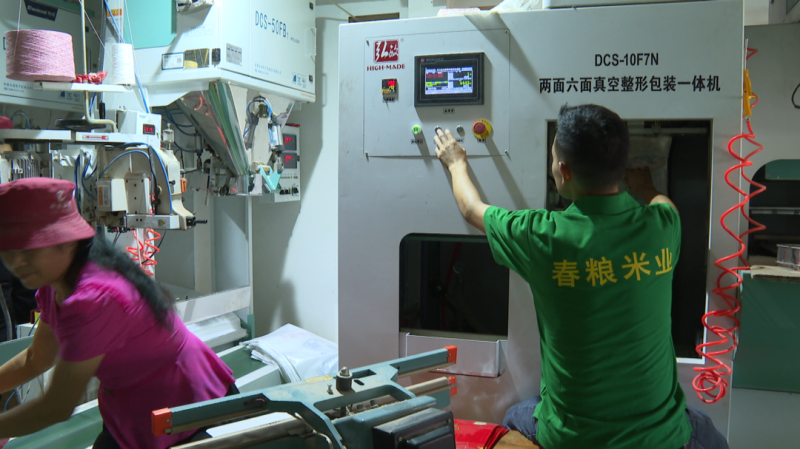 在共华镇春粮米业生产车间内,机器轰鸣,在工作人员熟练的操作下,大型的白米分级筛,色选机,碾米机,抛光机等同时作业,通过去石、磁选、水稻去壳、分离、厚度分级、碾米、白米分级、色选,最后到成品包装,春粮米业形成了一条先进的日产300吨大米的生产线。最后通过抽查,对生产的成品米进行质量检验,并提供出厂检测报告,一袋袋精美包装的“沅江大米”便由此销往全国各地。