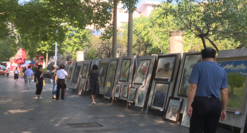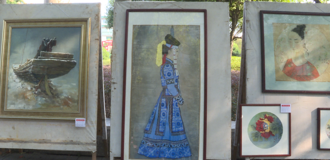 在湖心路,30余幅绘画作品吸引了不少市民驻足观看。还有不少市民拿出手机,留下最精彩的画作,准备回家继续欣赏。
