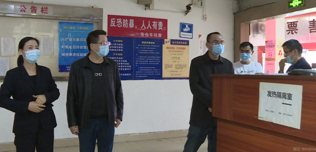 督查组一行首先来到百合车站,通过走访发现,周边商户、群众都存在未戴口罩的行为。走进百合车站,车站工作人员严格落实好佩戴口罩、体温检测、防疫健康码核验等工作。督查组要求旅客进站要做到“100%全程佩戴口罩、100%测体温、100%绿码通行——三个100%”。