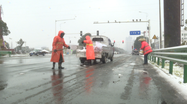 沅江市交通运输、城管执法等部门单位闻雪而动,迅速安排工作人员,来到桥梁、码头等重点交通路段,开展撒盐、铺设麻袋等工作,保证车辆和人员的出行安全。