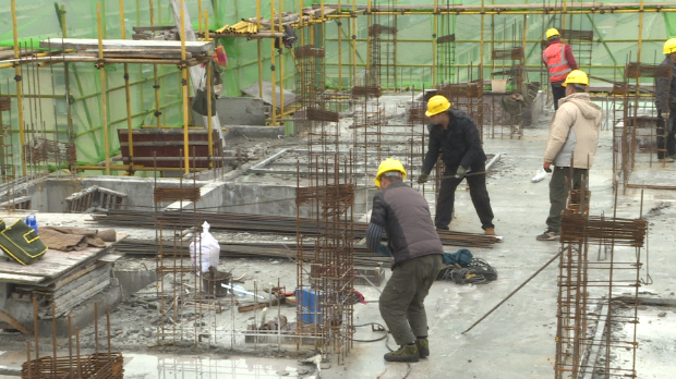 在渔民新村的一幢高楼上,工人们正在捆扎立柱,整理楼板。为保证项目的安全生产,施工单位对此做了周密部署,召开了调度会议,对疫情防控、安全生产都做了明确要求。