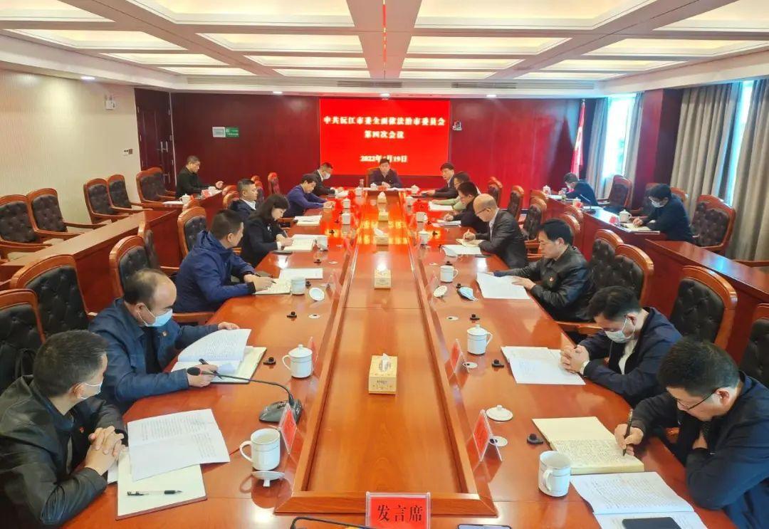 4月19日,中共沅江市委全面依法治市委员会第四次会议召开。市委书记、市委依法治市委员会主任杨智勇主持,市委副书记、市长罗必胜,市委副书记、统战部部长候耀森及彭达明、高应良、龙旺宇、刘慧峰、周军、樊春霞、赵军洪、郭强、李春华等市领导出席会议。