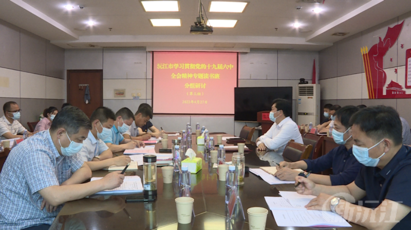 4月27日下午,沅江市学习贯彻党的十九届六中全会精神专题读书班开展分组研讨,学员们围绕学习贯彻党的十九届六中全会精神,结合学习党章党规、巩固拓展学习教育成果,结合各自工作职责展开研讨交流,畅谈了学习体会。沅江市委书记杨智勇,市委副书记、市长罗必胜,市委副书记、统战部部长候耀森,市领导龙旺宇、周军等一同研讨。