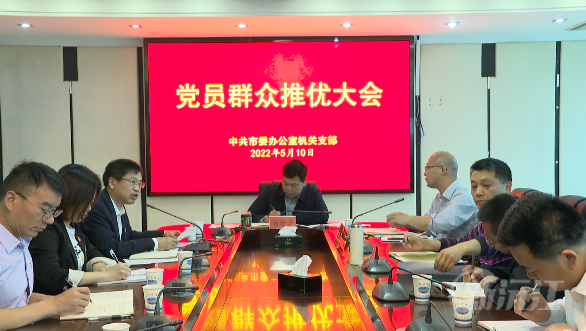 5月10日下午,沅江市委办党员推优大会在市治大院八楼举行。市委书记杨智勇,市委常委、市委办主任周军以普通党员的身份参加大会。