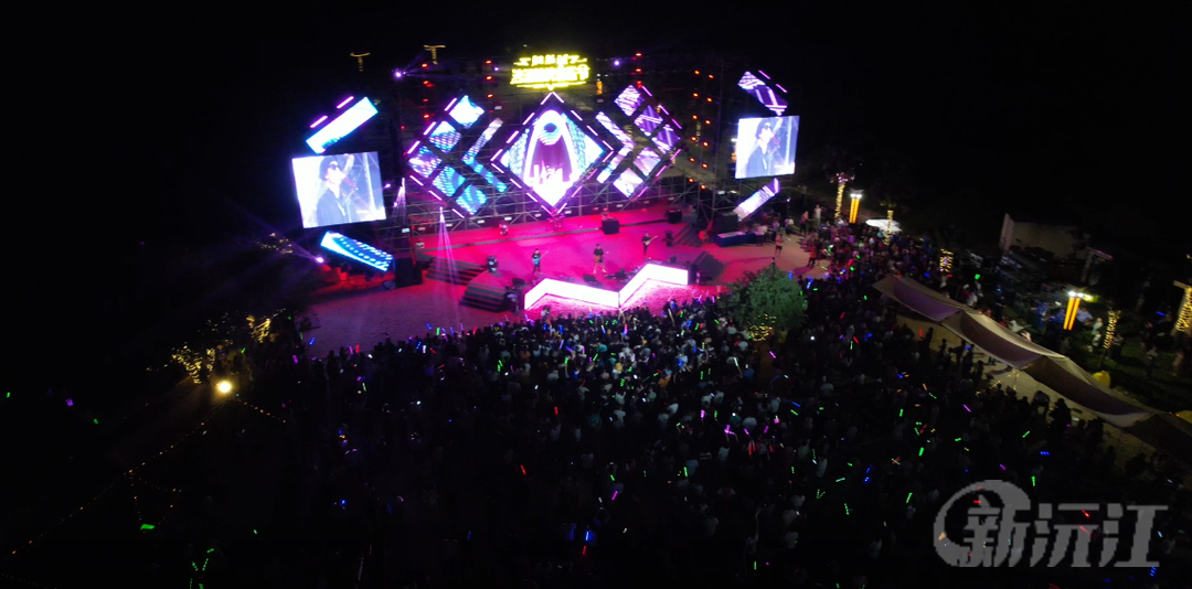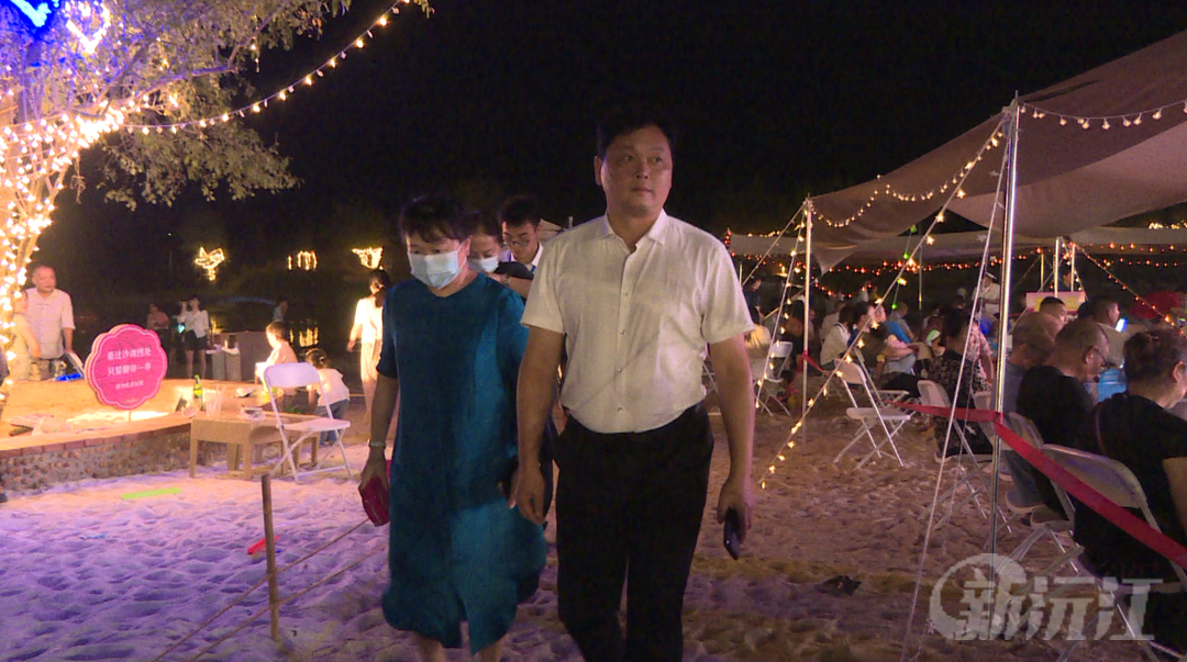 来到胭脂湖畔,灯光通明,音乐声震耳欲聋。杨智勇漫步沙滩,感受着现场欢快的氛围。