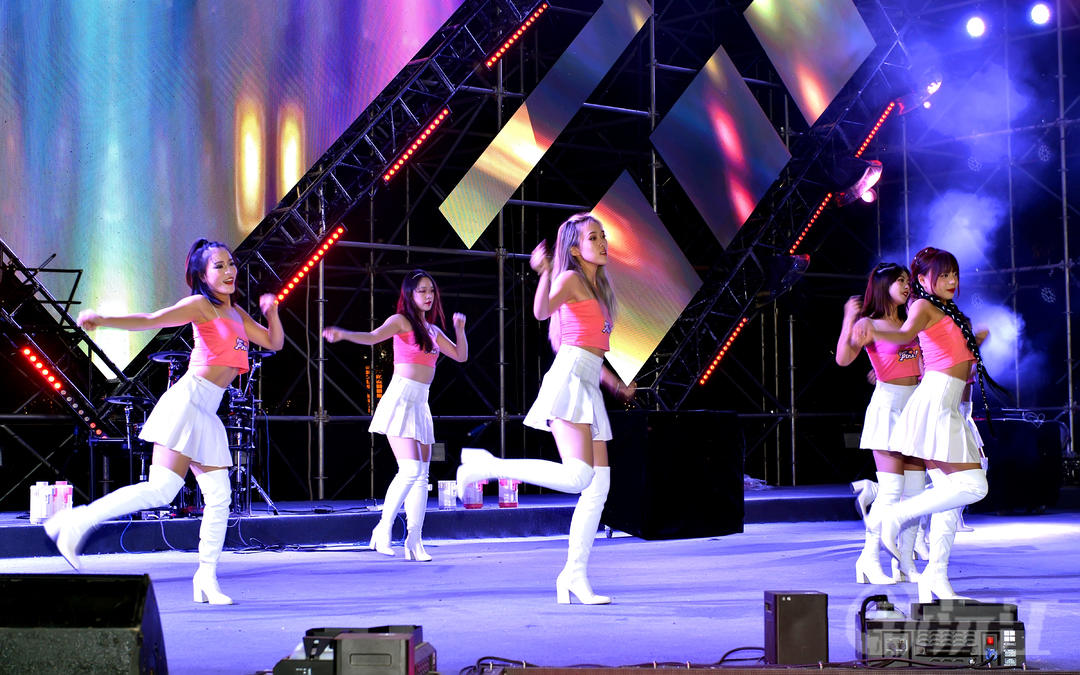 夜晚的胭脂湖畔人潮涌动,热闹非凡,大家都围聚在舞台前方,伴随着音乐舞动着身体。摇滚乐队现场演绎、DJ打碟+热舞、现场互动游戏、街舞表演等节目轮番上演,完美地烘托了全场气氛
