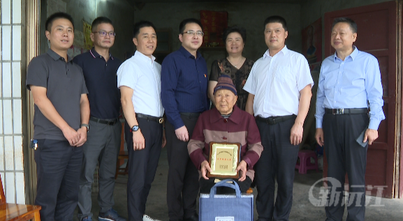 来到南嘴镇蠡山村,龙旺宇为廖氏果业种植基地授牌,并前往南嘴村,为百岁老人颁发了“百岁健康之星”匾牌,并送去了慰问金和由湖南金诚信珠宝有限公司赞助的纪念品。龙旺宇与百岁老人亲切交谈,并叮嘱老人一定要照顾好身体,健康长寿。