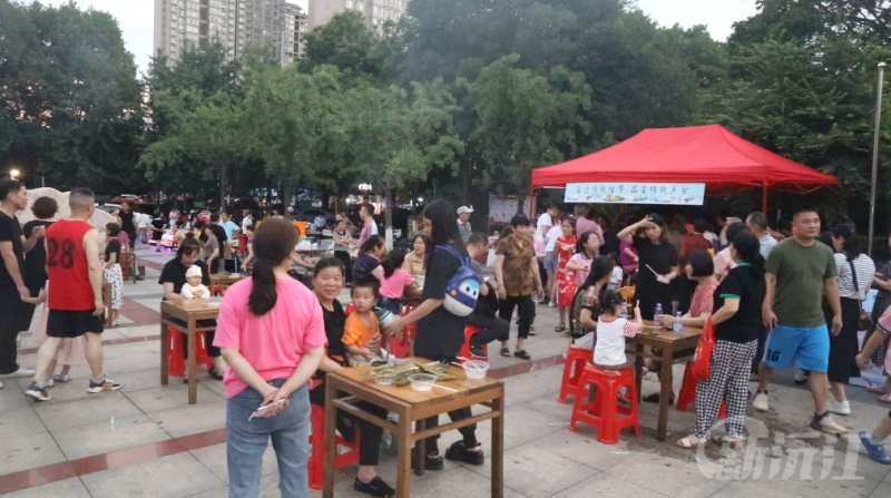 与此同时,在舞台的正前方,还有不少工作人员正在为前来观看表演的市民发放免费的粽子,让大家一同感受节日氛围。