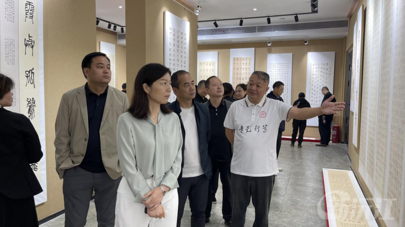 大家步入展厅,与苍劲有力的书法作品来一场面对面的交流,章、草、篆、楷,各种体裁的书法作品向人们传导着中国的书法之美,也展示了沈志平先生深厚的书法功底。此次展览以纪念毛泽东主席诞辰130周年——笃行致远为主题,共展出沈志平近十年来精心临摹和创作的百余幅作品,其中就包含了毛泽东诗词精选,为前来观展的群众彰显了毛泽东思想和中华传统的文化力量。