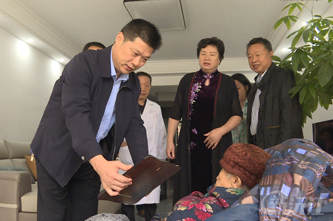 在琼湖街道太白社区、双凤社区胡喜珍和袁少芳两位百岁老人家中,吴限忠亲切地与老人交谈,详细询问老人的身体状况,嘱咐老人的子孙儿女要关心老人、照顾好老人的生活起居,同时亲手为老人颁发了“百岁老人健康之星”证书。他要求,相关部门、镇区街道要发扬尊老敬老爱老的传统美德,健全完善养老服务体系,多关心、多照顾,帮助老人解决实际生活中的困难和问题,既要保障老人的物质生活,也要为老人的精神生活创造条件,让他们在党和政府的关爱下安享晚年。