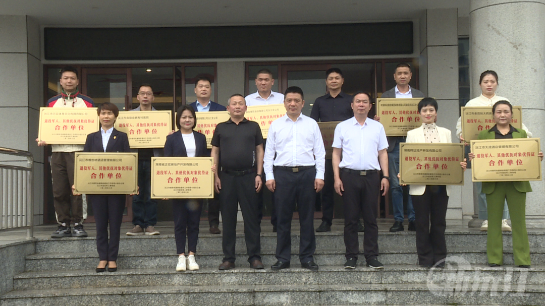 4月19日,沅江市退役军人、其他优抚对象优待服务项目(第一批)合作单位授牌仪式在军休所举行,旨在进一步拓展优待证的使用范围,为现役军人、退役军人和其他优抚对象搭建一个奉献爱心、享受优质优惠服务的广阔平台。副市长、公安局局长郭强出席授牌仪式。