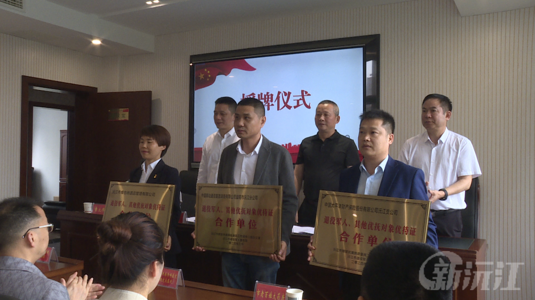 授牌仪式上,市退役军人事务局向市公共汽车公司、市血吸虫病专科医院、市老百姓大药房等11家单位表示了感谢,并为他们颁发了优待服务项目合作单位的牌匾。