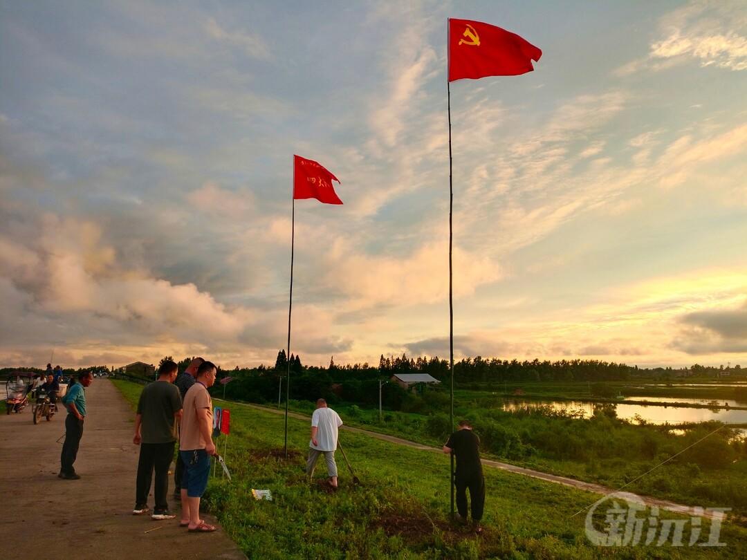 近日,受持续强降雨天气影响,沅江市防汛形势异常严峻。沅江市黄茅洲镇党员干部闻“汛”而动,迅速下沉一线,充分发挥党员先锋模范作用,打好防汛“主动仗”,筑牢防汛“安全堤”,让党旗在防汛抢险一线高高飘扬。