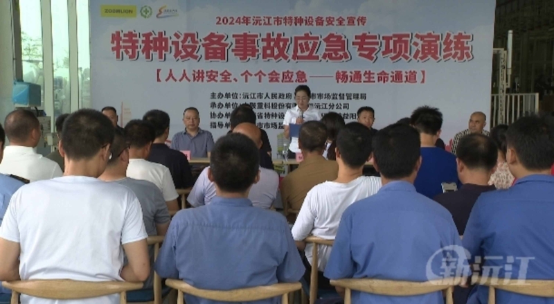 7月26日上午,沅江市市场监督管理局结合2024年“安全生产月”和“特种设备安全宣传周”,联合中联重科股份有限公司沅江分公司开展压力容器、叉车安全知识宣传暨应急救援演练活动。副市长钟清华出席活动。